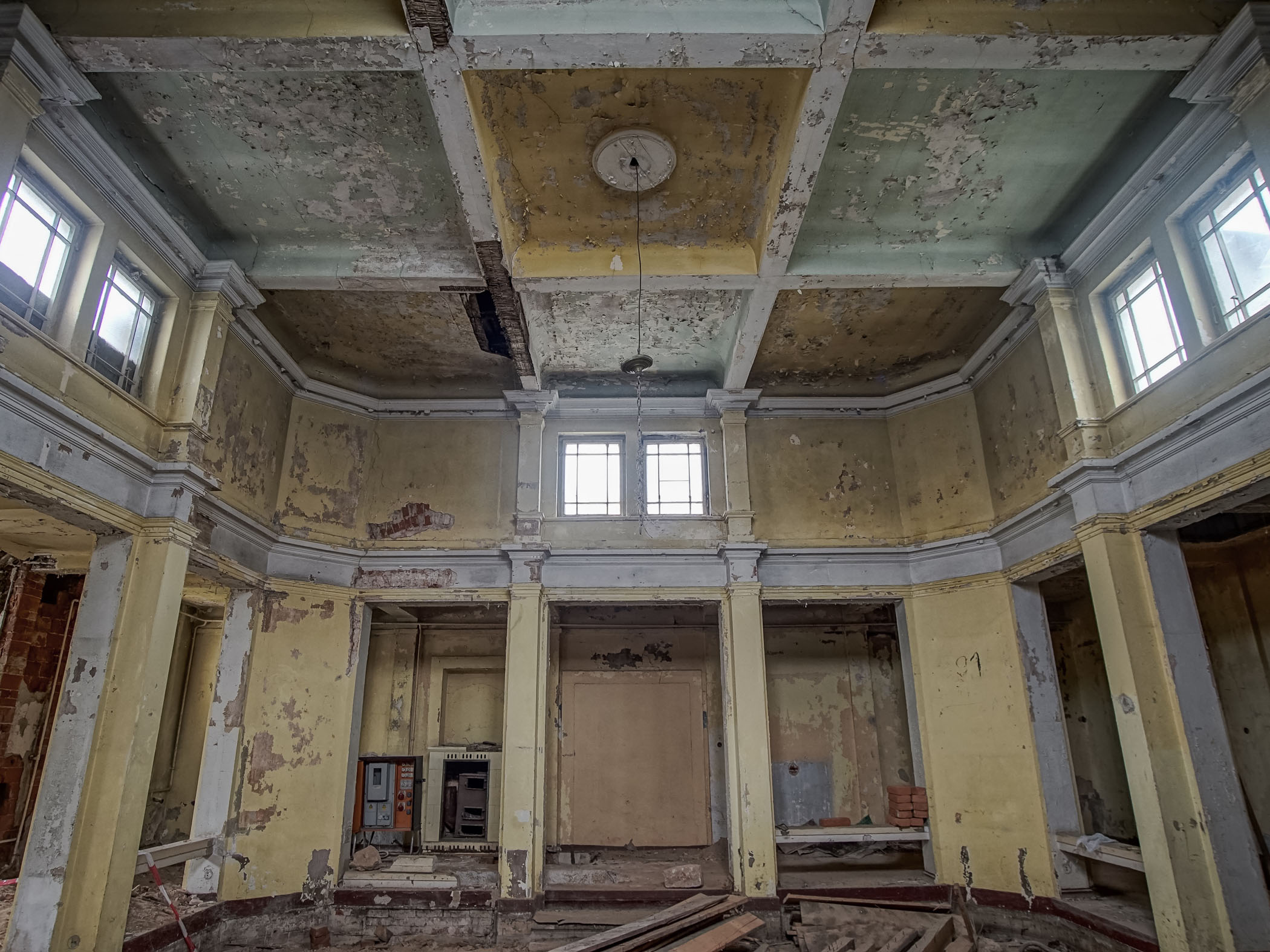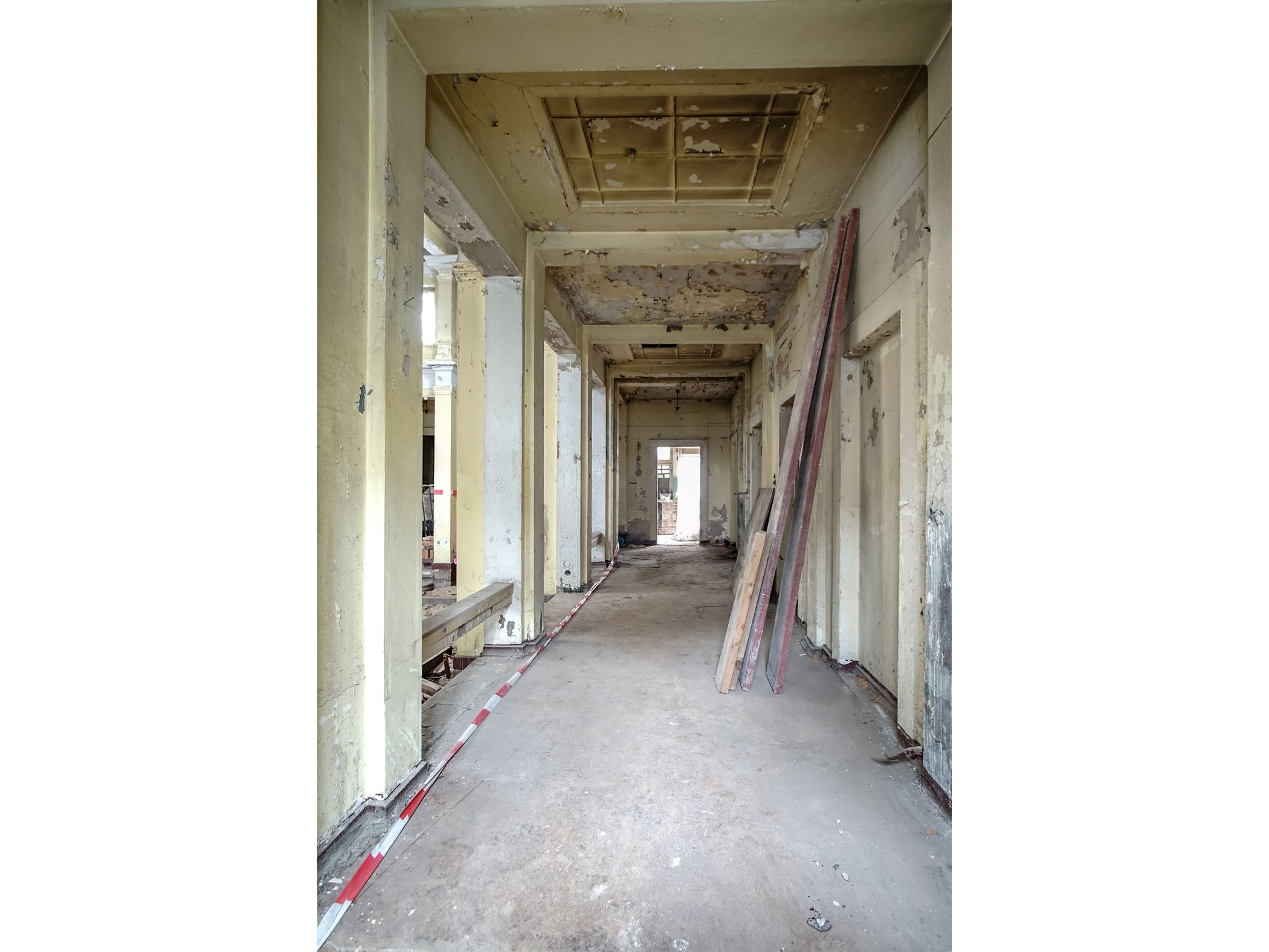 Das unterkellerte Gebäude ist eingeschossig mit einem erhöhten Mittelteil und wurde aufwendig denkmalgerecht saniert und als Architektur- und Ingenieurbüro genutzt. Bei der Planung wurde großen Wert darauf gelegt, daß die Struktur des Gebäudes erhalten bleibt. So befindet sich, der ursprünglichen Funktion des Gebäudes entsprechend, der Kommunikationsbereich ( großer Besprechungs- / Aufenthaltsraum ) im erhöhten Gebäudeteil, dem Atrium. Die Büroräume liegen um den Zentralraum in der Arkade und den Seitenflügeln herum. Auf der Ostseite wird der Bereich des ehemaligen Wandelganges ebenfalls zum Innenraum ausgebaut und mit freistehenden Wandscheiben und Glaselementen unterteilt. Dadurch bleibt der ehemalige Wandelfang auch heute noch nachvollziehbar.