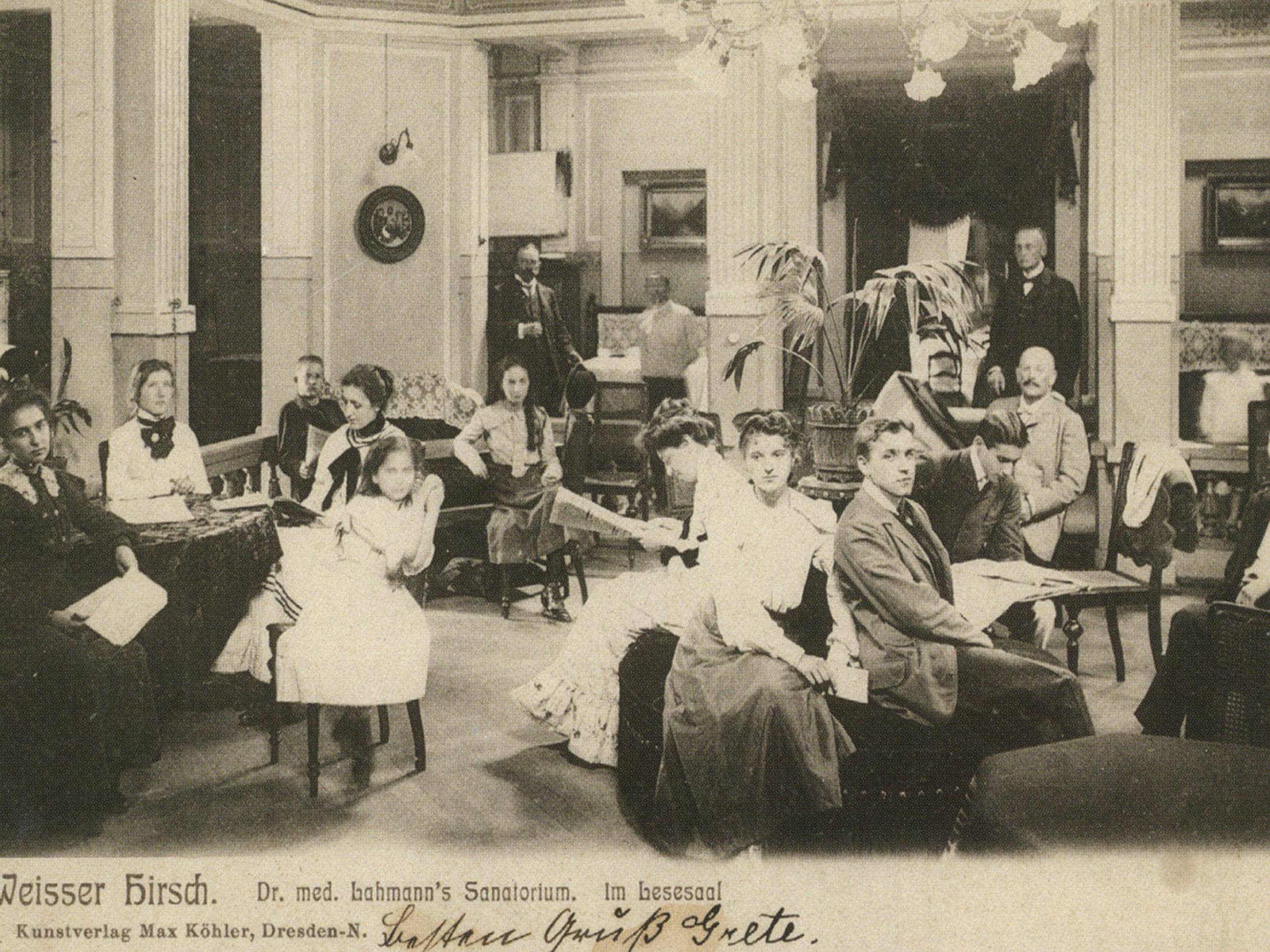 Das vermutlich 1867 ( mit dem „Fridabad“ ) errichte Gebäude ist Teil des Ensembles des ehemaligen „Lahmann- Sanatoriums“ in dem sich bedeutende Persönlichkeiten zu Beginn des 20. Jahrhunderts nach der Maxime „Natura sanat“ ( die Natur heilt ) von Dr. Lahmann kurieren ließen. Das Gebäude diente als „Gesellschaftshaus“, das zu Bibliothekszwecken und als Ort der Kommunikation genutzt wurde. Es befindet sich an einer zentralen Stelle innerhalb des Areals. Die Wege zwischen Doktorhaus, Speisesaal und Zentralgebäude kreuzten sich hier.