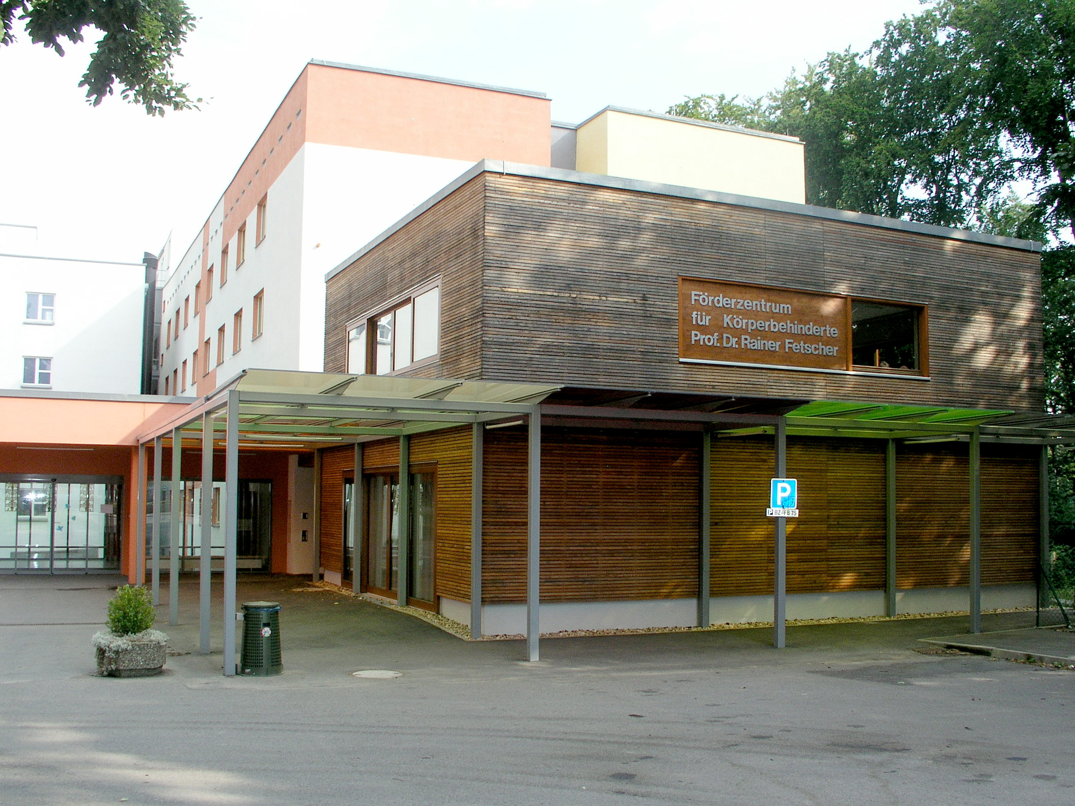 Das Gebäude wurde 1981 als 4- geschossiger Montagebau mit einer NGFvon 6400 qm errichtet. Es galt, das Schulgebäude zu modernisieren und entsprechend den tatsächlichen Bedürfnissen für 200 Schüler, davon 60 Schwerstbehinderte und Rollstuhlfahrer, zu erweitern. Im Eingangsbereich des Gebäudes entstand ein 2-geschossiger moderner Neubau, der die Aula und das Lehrerzimmer beherbergt. Für 5.1 Mio € entstand ein modern rekonstruiertes, farbig gestaltetes und mit höchstem Stand der Technik ausgestattetes Gebäude.