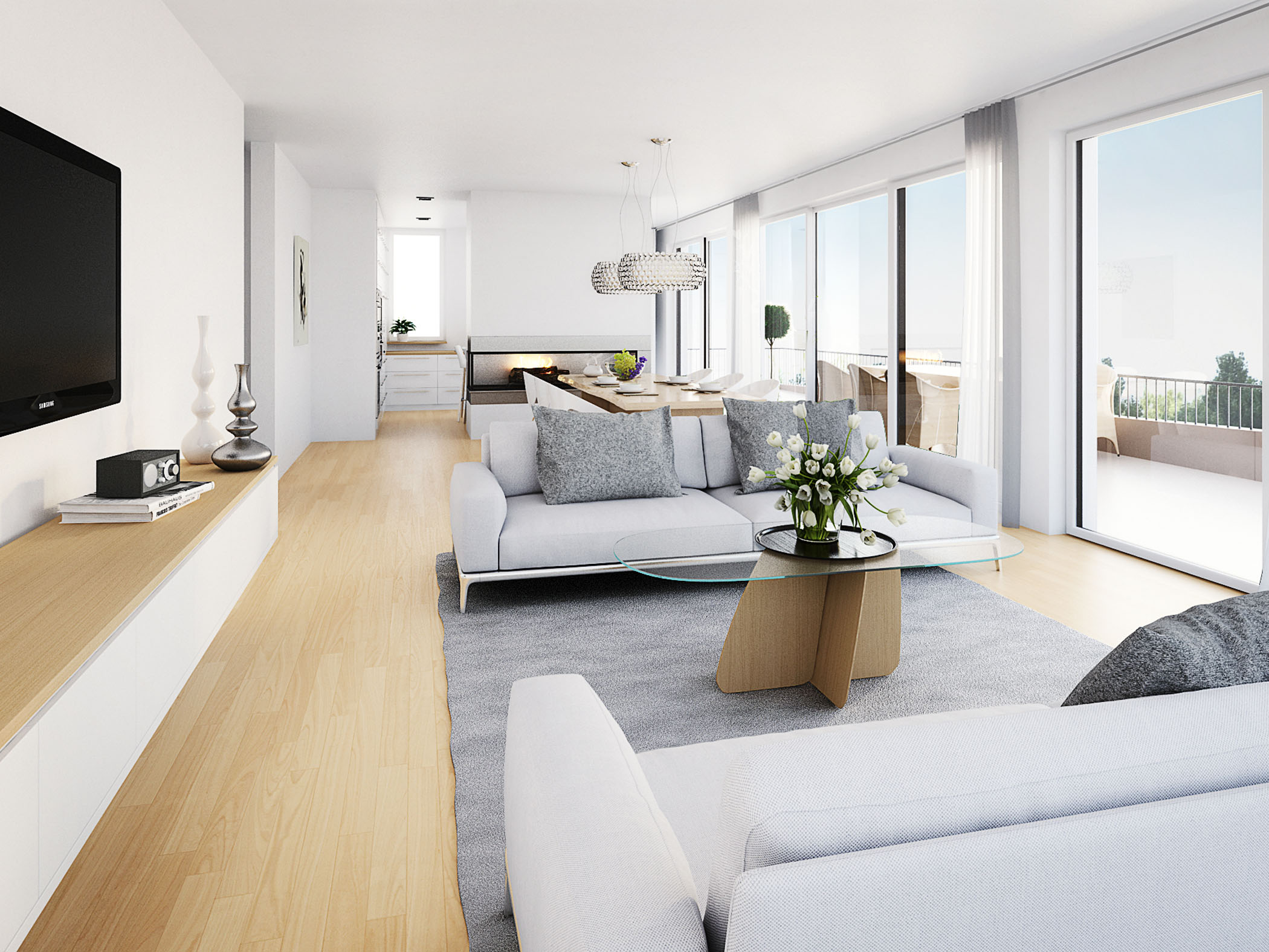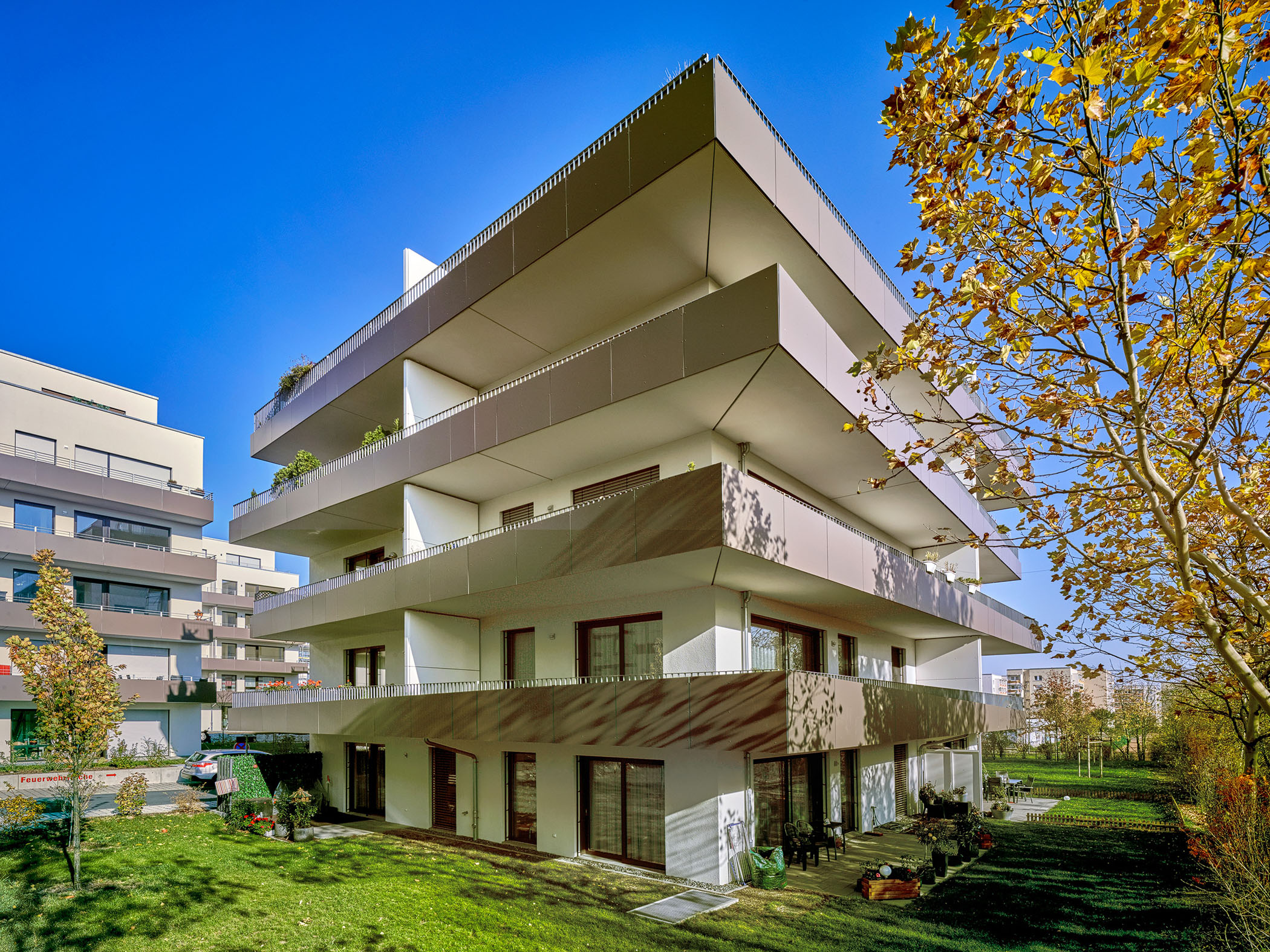 Es entstanden ca. 170 Eigentums- und Mietwohnungen in hoher Bauqualität und moderner Architektursprache mit klaren und hellen Grundrisslösungen und einer stilprägenden Balkon- und Fassadengliederung.