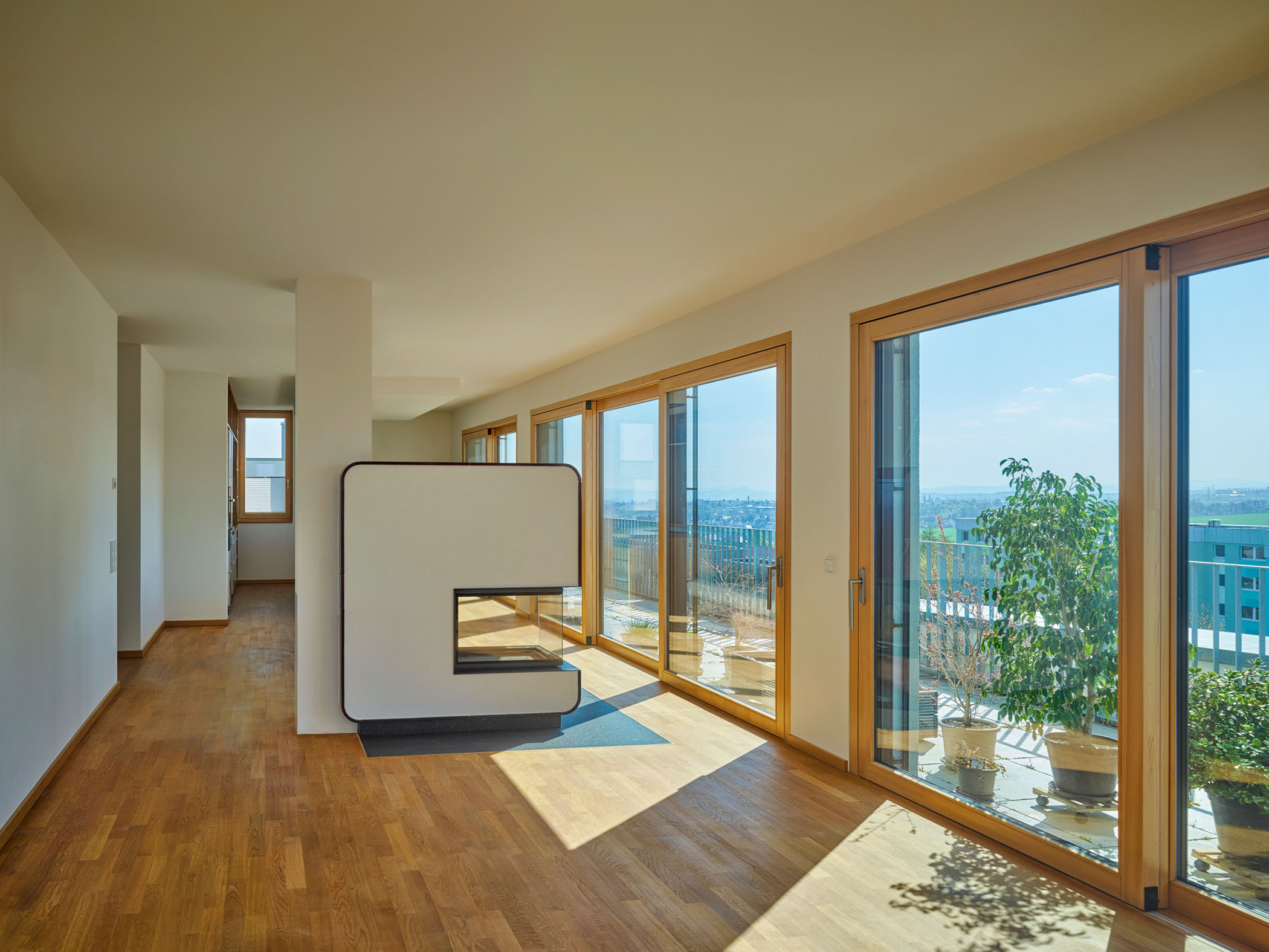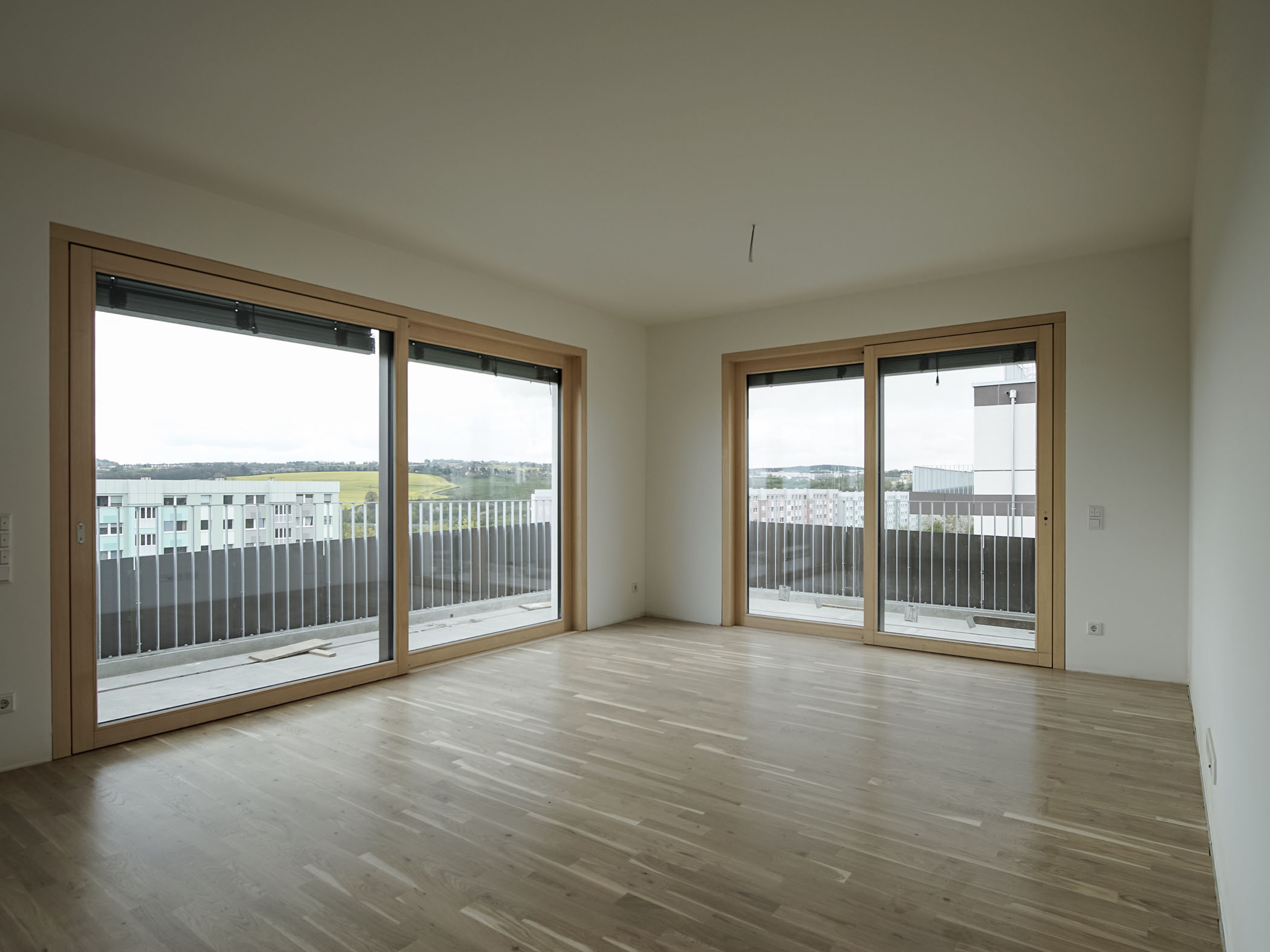 In den 7 Würfelhäusern entstehen je 15 helle, komfortable 2-, 3- und 4- Raumwohnungen mit großzügigen und natürlich belichteten Treppenhäusern. In den Penthauswohnungen der Staffelgeschosse ist die grandiose Aussicht über die weite Landschaft bis ins Erzgebirge zu genießen.