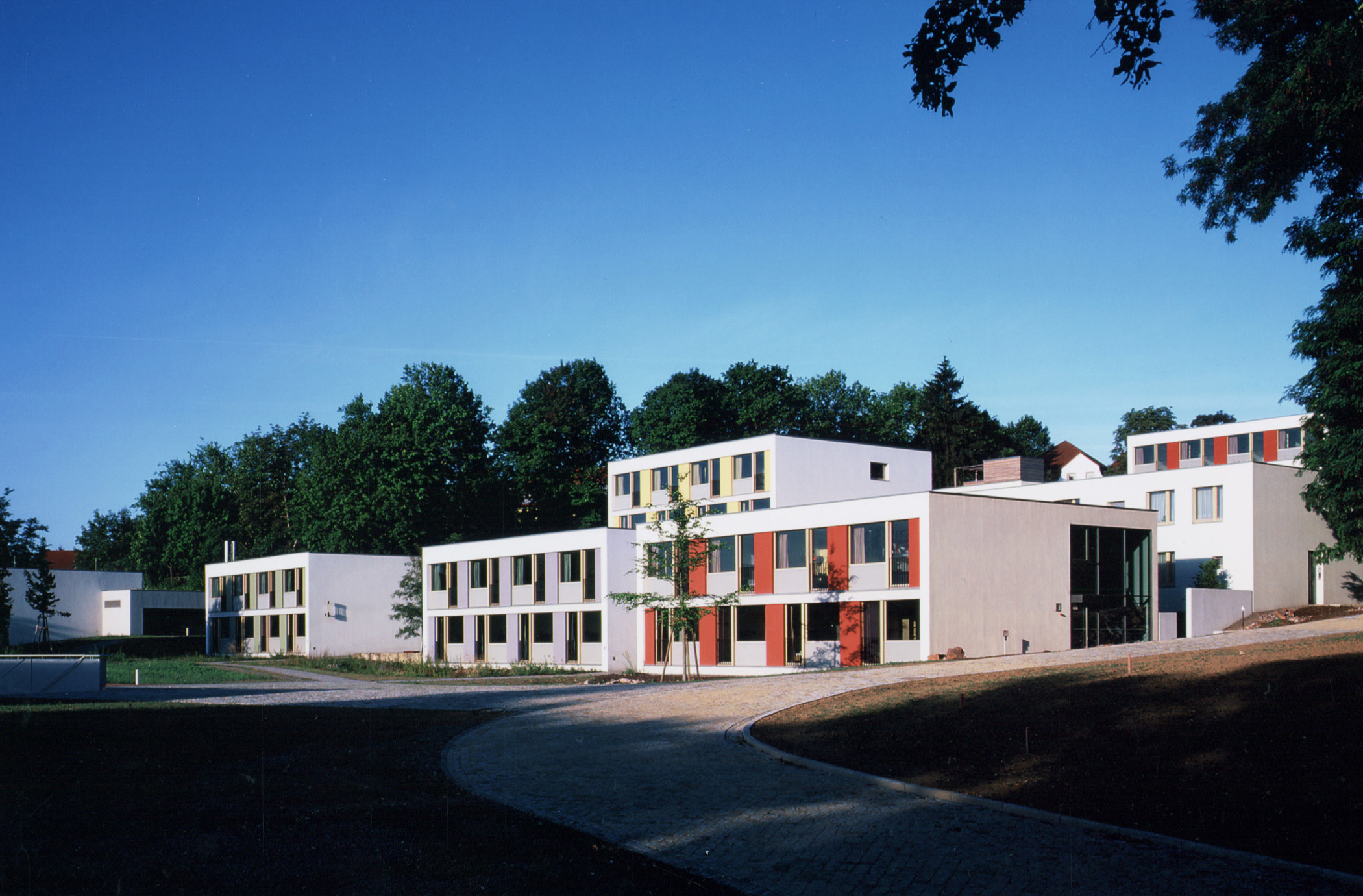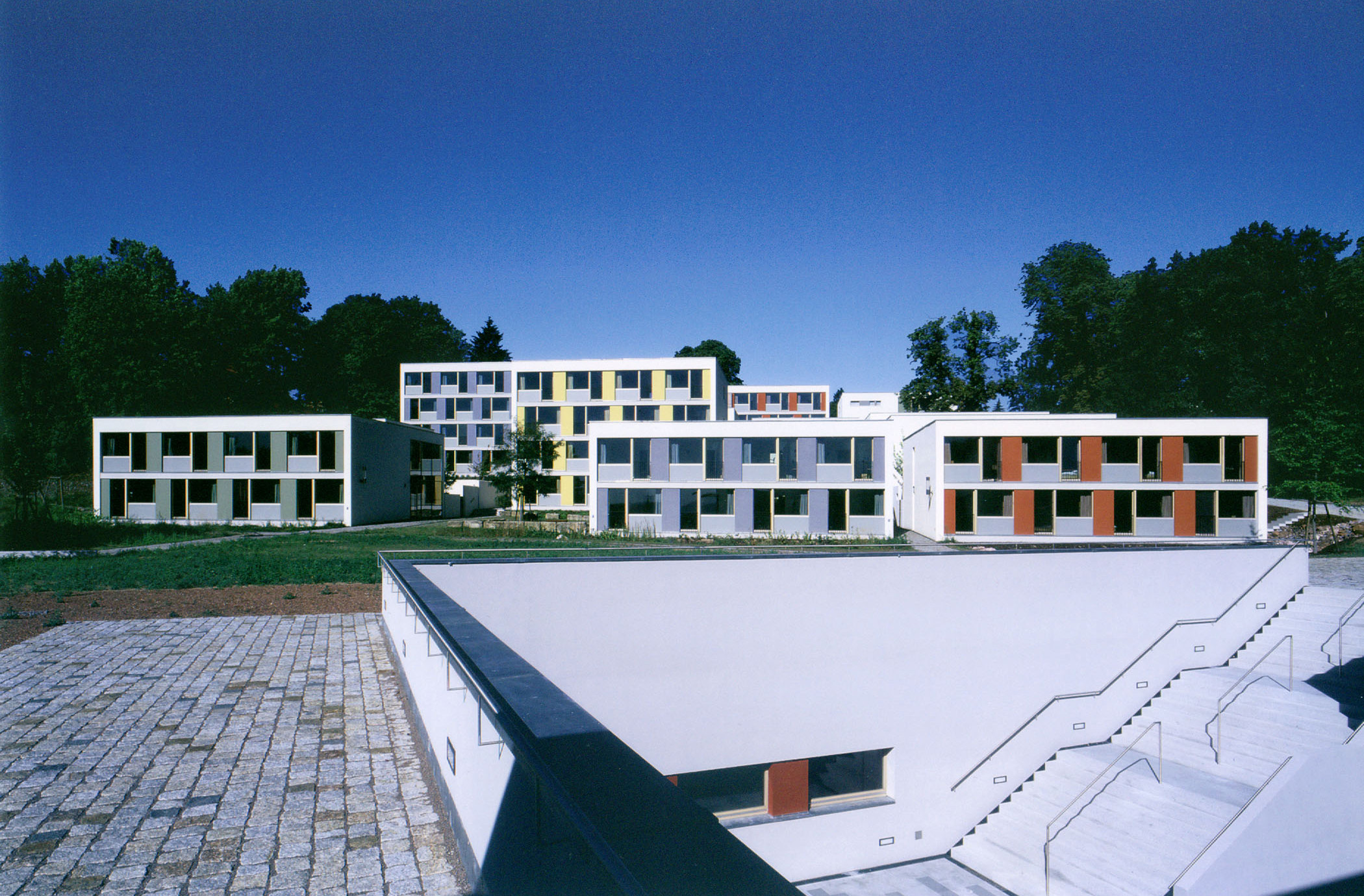 Das städtebauliche Konzept des Internatsneubaus geht auf einen Wettbewerbsentwurf von Prof. Jörg Friedrich, Hamburg, zurück. Die Umsetzung des Konzeptes lag in unseren Händen. Es galt, den Entwurf an die funktionalen Erfordernisse anzupassen, und die Baumaßnahme mit den zur Verfügung stehenden Mitteln zu realisieren. Dies erforderte eine weitgehende Umplanung. Das Internatsareal liegt am Berghang oberhalb der Meißener Altstadt. Schüler- und Mentorenhäuser bilden dörfliche Gemeinschaften. Gassen, Treppen und kleine Plätze erinnern an mediterrane Siedlungsstrukturen. Sporthalle und Mensa ergänzen die Anlage.